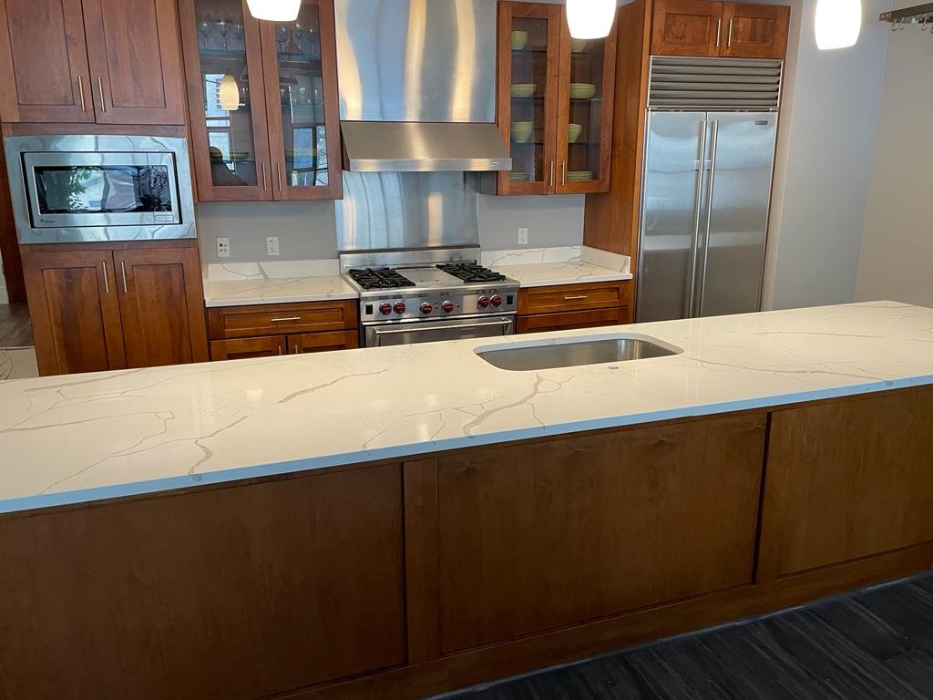 Functional elegance on every surface. Our granite and quartz countertops offer durability and style, enhancing the aesthetics of kitchens and bathrooms.